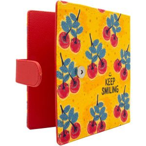 دفتر طراحی KEEP SMILING از هیدورا با زمینهای زرد پرانرژی و نقاشیهای شاد از گیلاسهای قرمز که لابهلای برگهای آبی-سبز پنهان شدهاند، یه حس سرزندگی و شادی به طراحیتون میده. توی وسط صفحه، جملهی مثبت و انگیزشی “KEEP SMILING” با فونتی بولد و چشمنواز حک شده که همیشه یادت میاره لبخندت رو نگه داری و خلاقیتت رو به رخ بکشی.