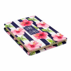 دفتر طراحی «shine like stars» از هیدورا با ترکیب خیرهکننده خطوط سرمهای و سفید کناری و گلهای صورتی و برگهای سبز، یک ترکیب زنده و دلنشین خلق کرده. وسط جلد، برچسبی ظریف با نوشته «SHINE like STARS» الهامبخش، انرژی مثبت به کل طراحی اضافه کرده و حسابی چشمنوازه. این طرح تازه و بانشاط کاملاً حس درخشیدن و به ستارهها رسیدن رو منتقل میکنه.