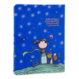 تصور کنید زیر آسمان پرستارهای در شبهای گرم تابستون، با دفتری توی دستتون که نه فقط یک دفتر معمولی، بلکه داستانی زیبا از “شازده کوچولو” رو براتون تداعی میکنه. زمینه آبی روشن با ستارههایی که انگار چشمک میزنن، و اون پسربچه مهربون با لباس سبز و شال زردش، دقیقاً مثل دوستی که کنار شماست و دنیای اطراف رو با کنجکاوی نگاه میکنه. روباه بازیگوش کنار شازده کوچولو هم که کلی شور و هیجان به این فصل شب اضافه کرده. بطور کلی، این طراحی جذاب و خیالانگیز، حس دوست داشتن، کشف و ماجراجویی رو توی دل هر نقاش و نویسندهای زنده میکنه.