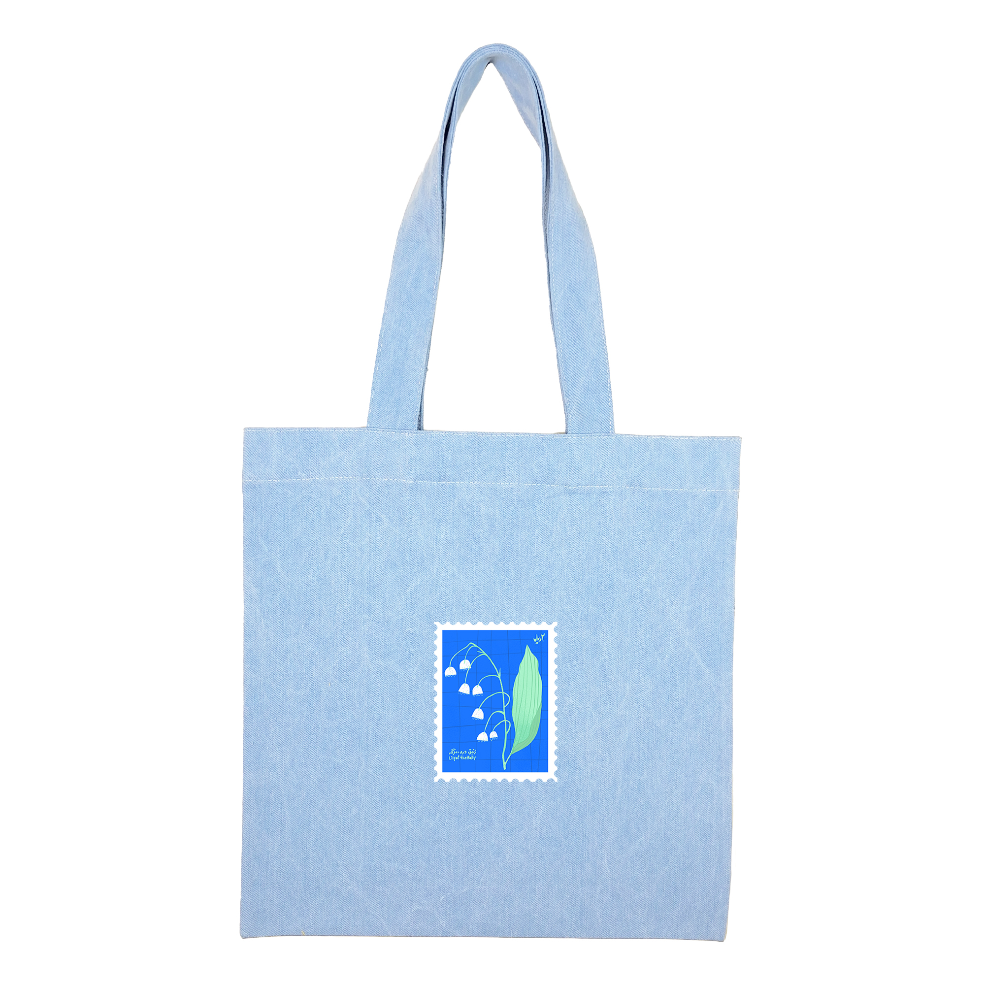 توتبگ جین آبی روشن طرح تمبر گل زنبق دره آبی