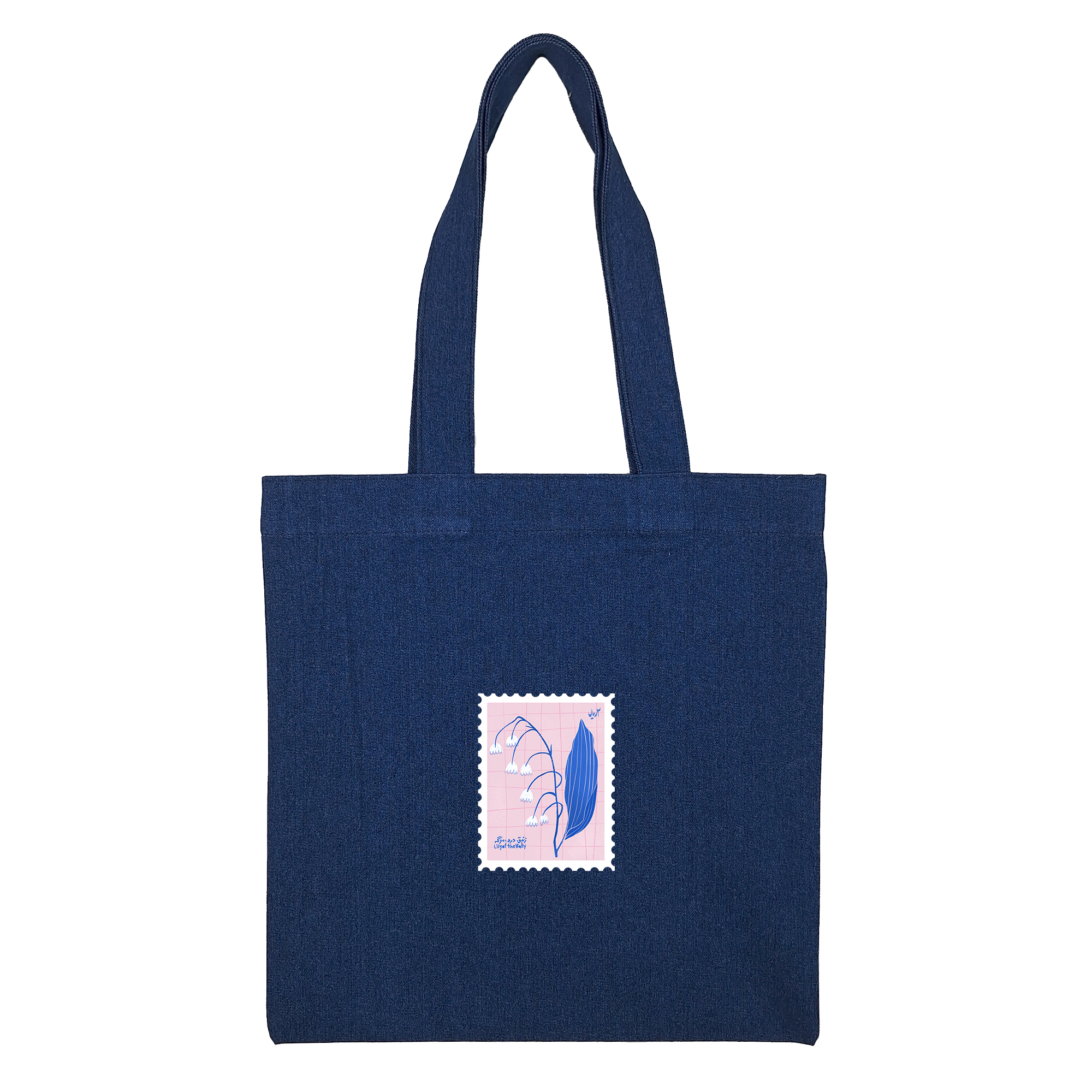 توتبگ جین سورمه ای طرح تمبر گل زنبق دره صورتی