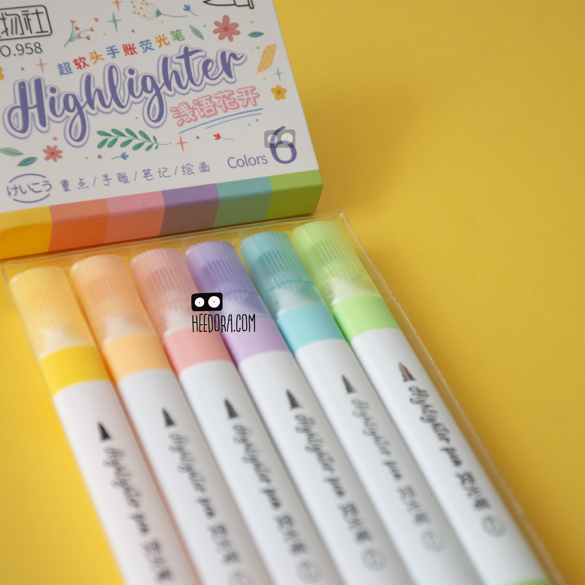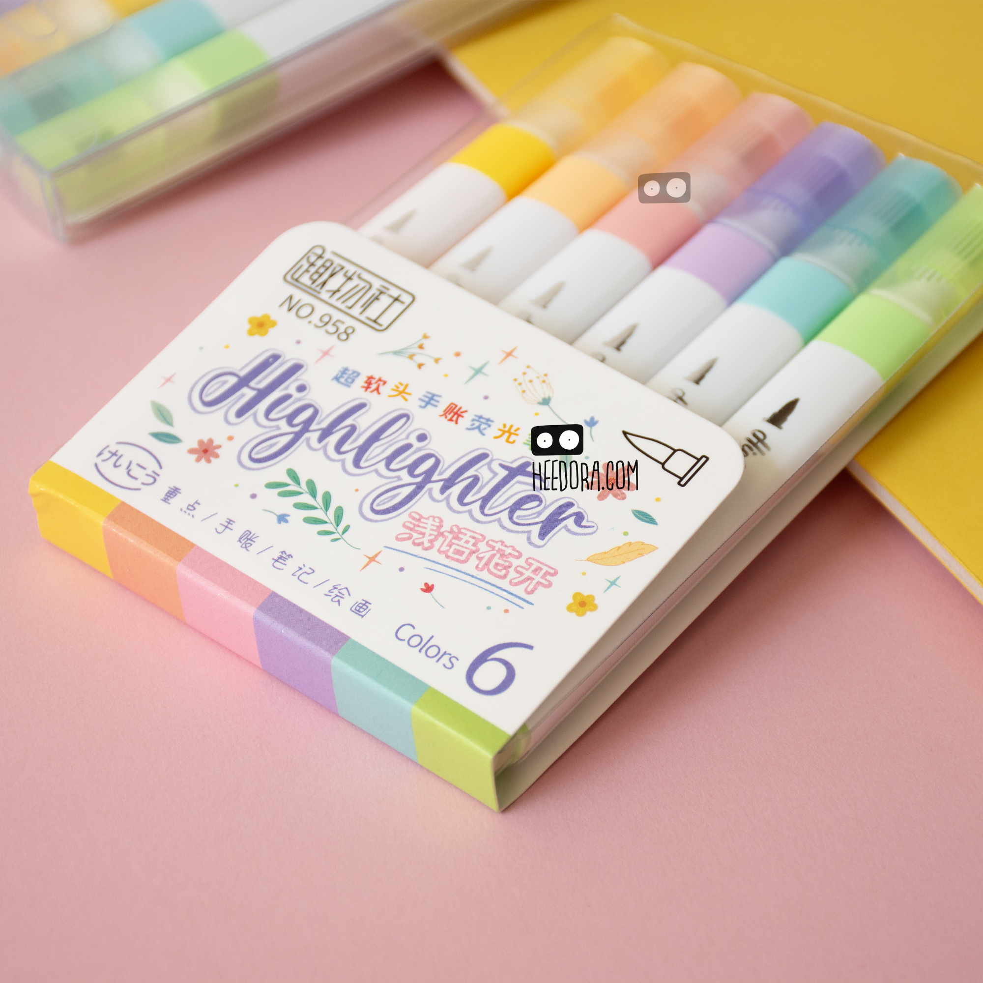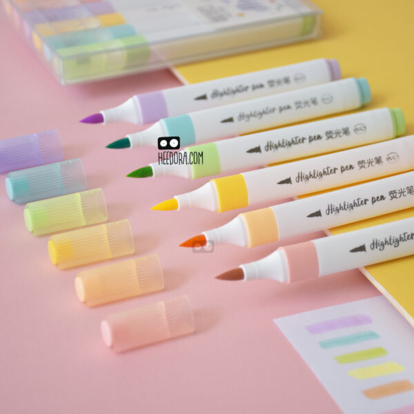 هایلایتر پاستلی با نوک قلم مویی نرم – ۶ رنگ