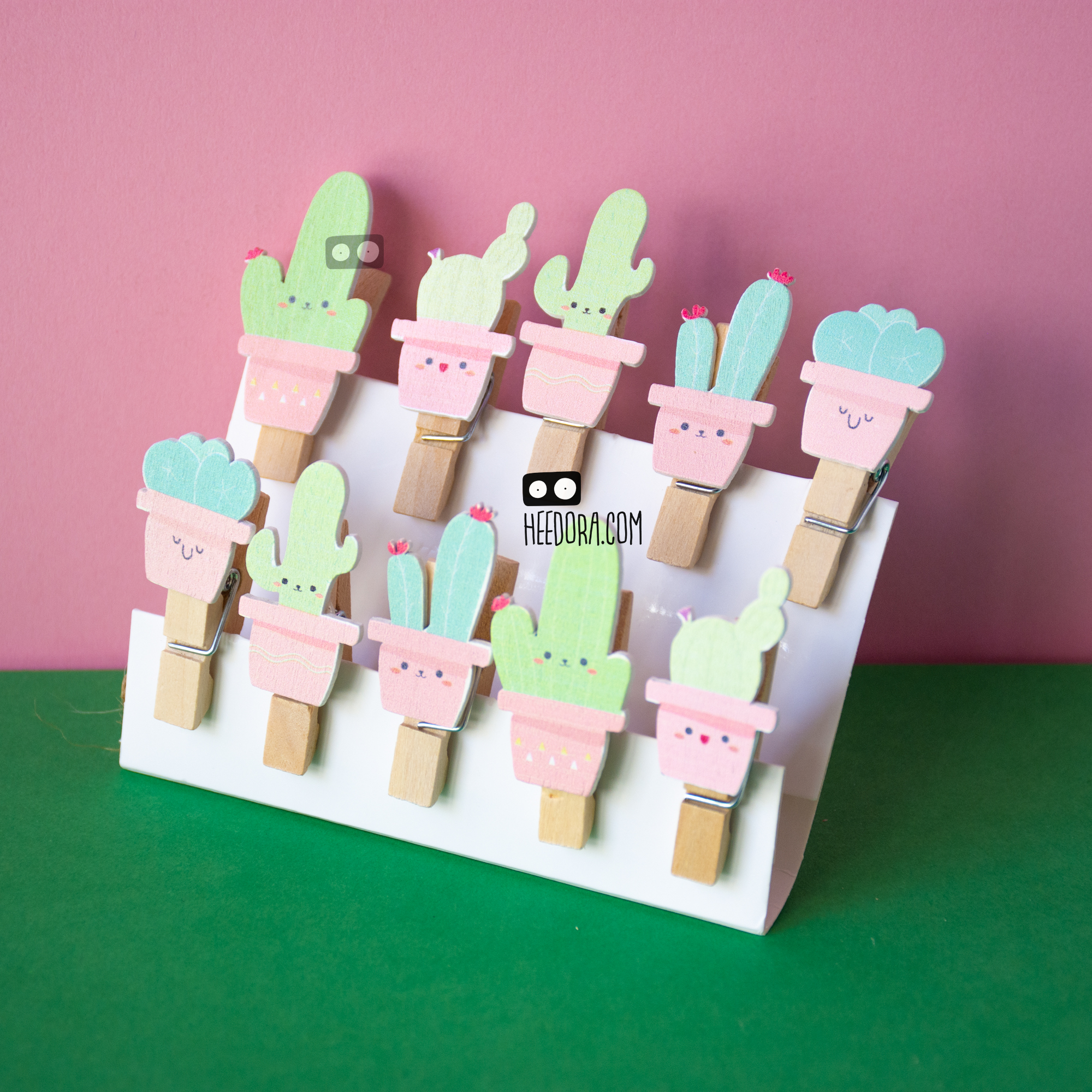 گیره چوبی کاکتوس برای تزیین و دکور کردن و توجه به جزییات کوچک و بامزه در زندگی ساخته شده.