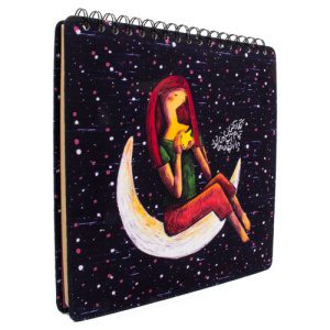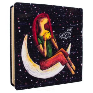 کلاسور «تو آمدی ز دورها» یه طراحی خاص و دلنشین داره که یه دختر رو نشون میده که روی هلال ماه نشسته و با یه میوه تو آغوشش بازی میکنه. زمینه پر از ستارهها و رنگهای ملایم و چشمنواز، حس یه دنیای رویایی و آرامشبخش رو منتقل میکنه. نوشتهای هم کنار تصویر هست که مثل یه شعر کوتاه، یه داستان لطیف و زمزمههای آرام بهش اضافه کرده. این طراحی هم کاربردی هست و هم یه شکل هنری خوشگل برای خود کلاسور ساخته.